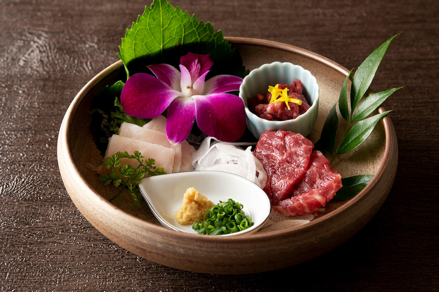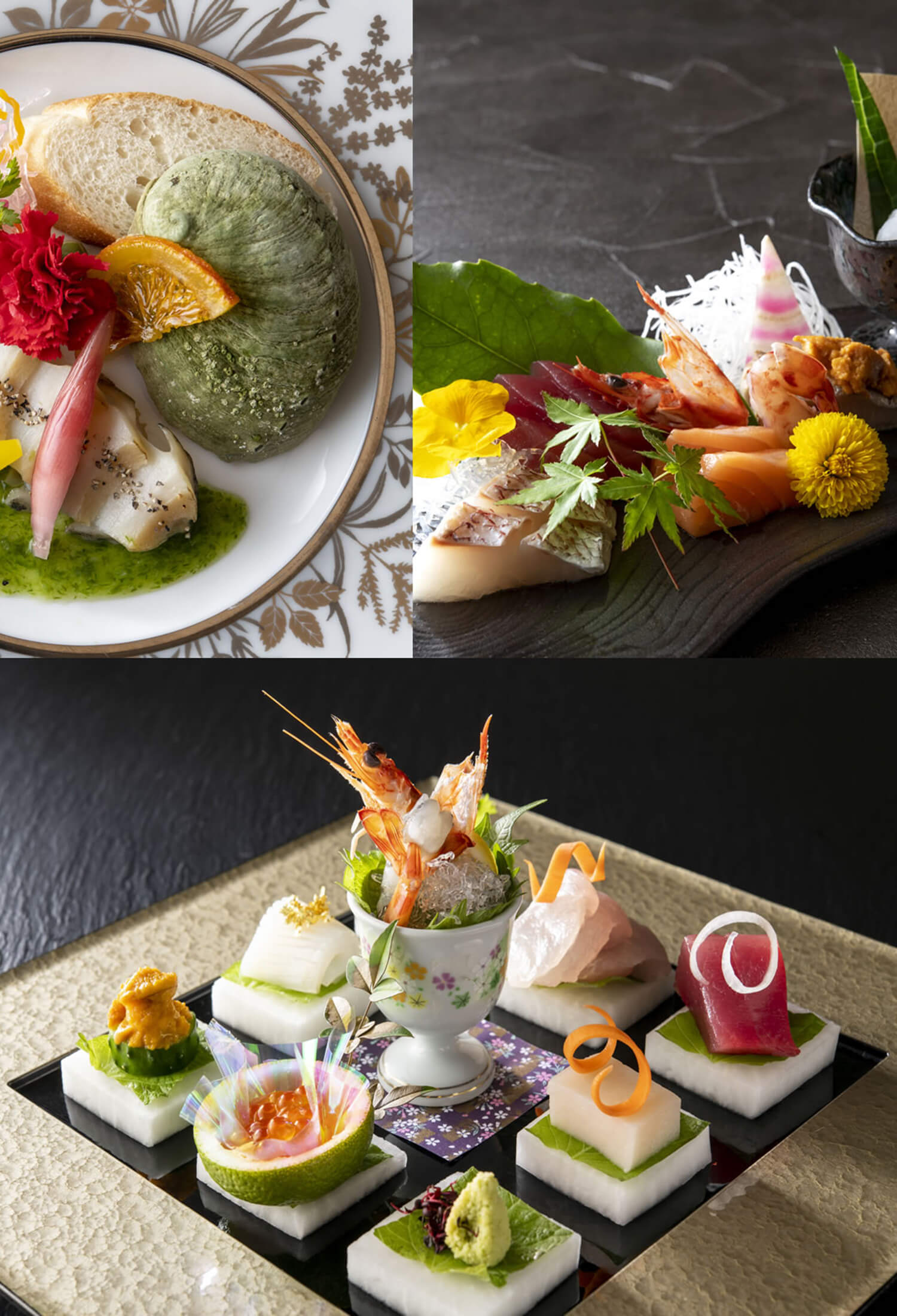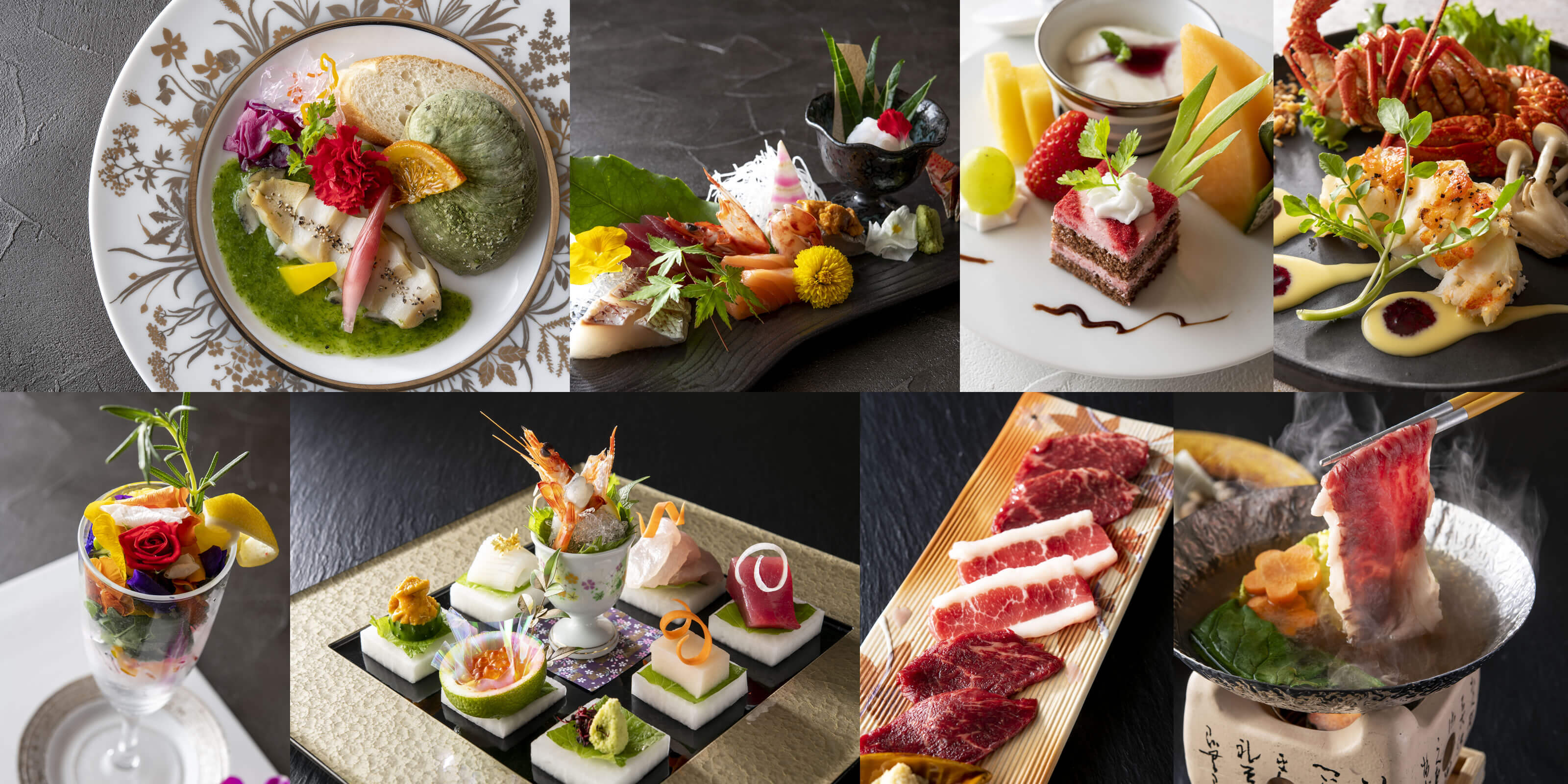 熊本県産の新鮮な食材を使用し、一流の料理長が腕を振るう四季折々のお料理を。ご夕食は約40種類からお選びいただけるオールインクルーシブで、ご朝食は料理人が一から仕込むお料理を和・洋からお選びいただけます。