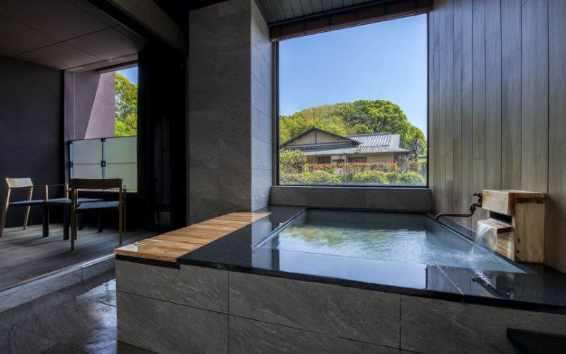 ※⼀部屋毎に、館内にございます宿泊者専⽤個室温泉をご⽤意させていただきます。